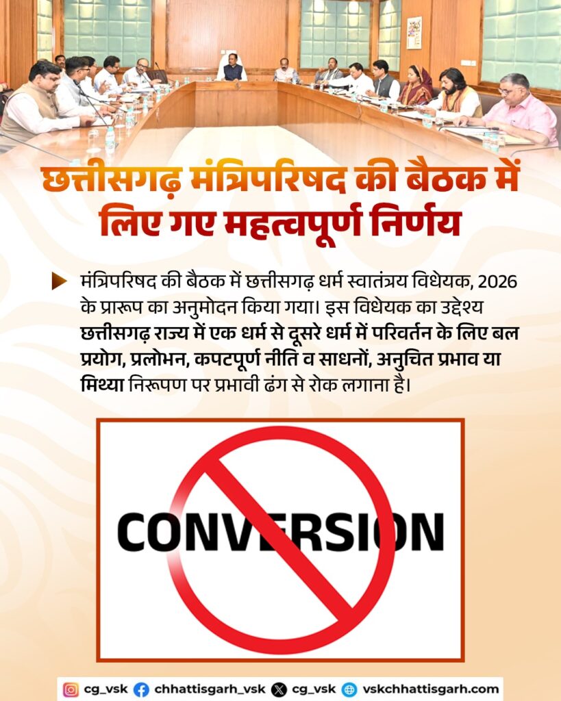इन तीनों पृष्ठभूमियों के आधार पर जब छत्तीसगढ़ धर्म स्वातंत्र्य विधेयक, 2026 सामने आया, तो यह विधेयक एक ऐसे समय में आया जब राज्य में संगठित धर्मांतरण को लेकर व्यापक जनचिंताएँ उभर रही थीं। मुख्यमंत्री Vishnu Deo Sai की अध्यक्षता में कैबिनेट द्वारा स्वीकृत यह मसौदा न केवल उपर्युक्त राज्यों के अनुभवों को सम्मिलित करता है, बल्कि उन चुनौतियों की पहचान भी करता है जिनके लिए भारतीय विधायी ढाँचा अभी तक पूरी तरह तैयार नहीं था। उदाहरण के लिए, “डिजिटल धर्मांतरण” की विस्तृत परिभाषा—जिसमें सोशल मीडिया अभियान, ऑनलाइन प्रचार, डिजिटल वादे, और इंटरनेट-आधारित प्रलोभन को अवैध रूप में चिह्नित किया गया है—छत्तीसगढ़ को भारत का सबसे आधुनिक कानून बनाने वाली विशेषताओं में से एक है।