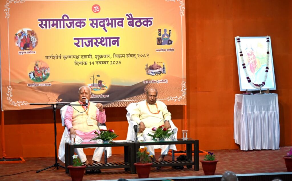 जयपुर, 14 नवम्बर। राष्ट्रीय स्वयंसेवक संघ के सरसंघचालक डॉ. मोहन भागवत जी ने कहा कि  सद्भावना भारत का स्वभाव है। नियम और तर्क के आधार पर समस्याएं ठीक नहीं हो सकती, इसके लिए सद्भावना चाहिए और हमें यही काम करना है। उन्होंने कहा कि स्वार्थ भावना यह दुनिया का स्वभाव है। स्वार्थ भावना के आधार पर दुनिया को सुखी करने का प्रयास दो हज़ार साल से चल रहा है और विफल हो रहा है क्योंकि स्वार्थ सबका भला नहीं कर सकता। जिसमें ताकत है वो अपना स्वार्थ साध लेता है, उसके मन में कोई संवेदना नहीं रहती। स्वार्थ तो परस्पर विरोधी होता ही है।