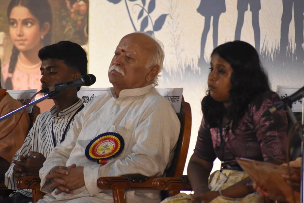 RSS Sarsanghchalak Dr. Mohan Bhagwat Ji stated that Bharat will become the ‘Vishwa Guru’ only when everyone strives together. He reminded the audience that Bhagwan Krishna did not lift his little finger to raise the Govardhan Hill until all the Gopis and Gopas attempted to lift it with their own sticks. “We must grow, but simultaneously, we must work for the nation,” he said. He was speaking after inaugurating the Bala Netru shibir organized in connection with ‘Suvarnamrutham’, the golden jubilee valedictory program of Balagokulam, held at Bhaskareeyam, Elamakkara.
