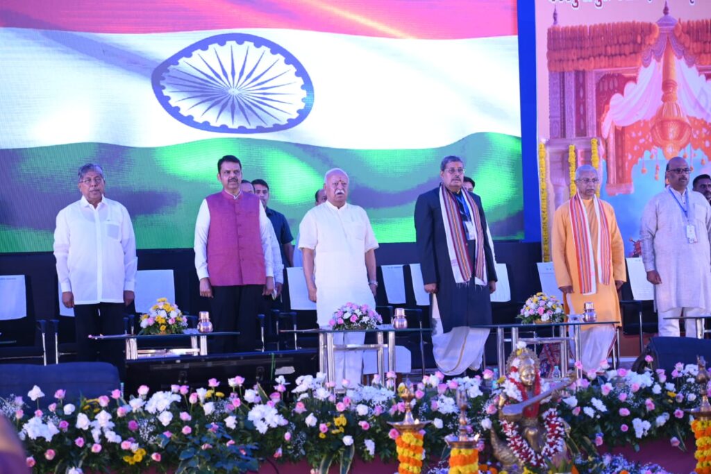 सरसंघचालक जी रामटेक के कवि कुलगुरू कालिदास संस्कृत विश्वविद्यालय के वारंगा स्थित अभिनव भारती अंतरराष्ट्रीय शैक्षणिक परिसर में डॉ. केशव बळिराम हेडगेवार अंतरराष्ट्रीय गुरुकुल के उद्घाटन अवसर पर संबोधित कर रहे थे। मंच पर मुख्यमंत्री देवेंद्र फडणवीस, उच्च शिक्षा मंत्री चंद्रकांत पाटिल, कुलपति डॉ. हरेराम त्रिपाठी, पूर्व कुलपति डॉ. पंकज चांदे, डॉ. उमा वैद्य और निदेशक कृष्णकुमार पांडे उपस्थित थे।